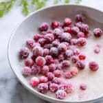 It’s best to use fresh cranberries, as frozen ones release more moisture and may not get the same sparkly texture when sugared.