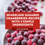 These 3 Ingredients Sparkling Sugared Cranberries are a simple and elegant holiday treat made by soaking fresh cranberries in a vanilla-infused simple syrup, then rolling them in sparkling sugar for a festive, crunchy coating. Perfect as a garnish for cocktails or a sweet, tangy snack, they bring both color and flavor to any celebration.