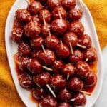 Keywords: guava meatballs, slow cooker meatballs, barbecue meatballs, guava jelly, easy appetizer, sweet and savory meatballs, party meatballs