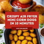 Air fryer mini corn dogs make a quick and tasty snack that’s crispy on the outside and juicy inside. Perfect for a party appetizer or an easy after-school treat, they cook up golden and delicious in just minutes.