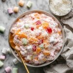 Keywords: Ambrosia salad, fruit salad, creamy fruit salad, whipped cream dessert, marshmallow fruit salad