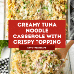 This best tuna casserole combines creamy mushroom soup, tender egg noodles, and flaky tuna for a comforting, easy-to-make meal. Topped with a cheesy, buttery breadcrumb crust, it’s perfect for a family dinner or potluck.