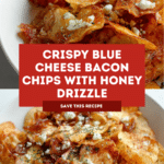 Keywords: Blue Cheese Chips, Bacon Chips, Baked Chips, Appetizer, Snack, Kettle Chips, Blue Cheese, Honey Drizzle