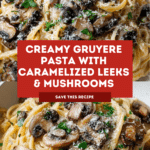 A rich and comforting Caramelized Leek and Mushroom Gruyere Pasta featuring tender fettuccine tossed in a creamy Gruyere cheese sauce with caramelized leeks, sautéed mushrooms, and a hint of garlic. This easy stovetop recipe balances savory and creamy flavors with a fresh parsley garnish.