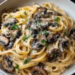 A rich and comforting Caramelized Leek and Mushroom Gruyere Pasta featuring tender fettuccine tossed in a creamy Gruyere cheese sauce with caramelized leeks, sautéed mushrooms, and a hint of garlic. This easy stovetop recipe balances savory and creamy flavors with a fresh parsley garnish.