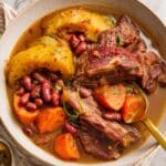 Caribbean Red Peas Soup is a hearty and flavorful traditional Jamaican soup made with red kidney beans, salted pigtails, aromatic vegetables, and coconut milk. This comforting soup features tender beans and savory pork, enriched with warming spices like allspice and thyme, and is finished with handmade dumplings and starchy provisions for a complete and satisfying meal.