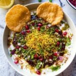 - Step 12: Finish by topping generously with sev and chopped fresh coriander.