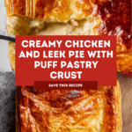 Keywords: chicken pie, leek pie, savory pie, puff pastry pie, creamy chicken pie