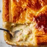 Keywords: chicken pie, leek pie, savory pie, puff pastry pie, creamy chicken pie