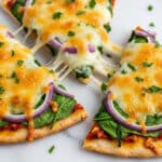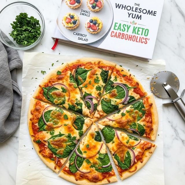 This Chicken Crust Pizza is a low-carb, gluten-free alternative to traditional pizza featuring a savory crust made entirely from shredded chicken, Parmesan cheese, and eggs. Topped with creamy Alfredo sauce, fresh spinach, red onions, and melted mozzarella, this recipe offers a delicious and protein-packed twist on your favorite comfort food. Perfect for those seeking a grain-free pizza option without sacrificing flavor or texture.
