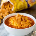 - Serve with toppings: Ladle the chili into bowls and garnish with shredded cheddar cheese and crushed Chili Cheese Fritos for added texture and flavor.