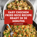 This Chicken Fried Rice recipe is a flavorful, quick, and easy dish that combines tender cooked chicken, savory scrambled eggs, fresh vegetables, and fluffy rice. Stir-fried with garlic, ginger, soy sauce, and sesame oil, this classic Asian-inspired meal is perfect for a satisfying weeknight dinner or a hearty lunch.