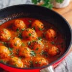This Chicken Kofta Curry recipe features tender, spiced ground chicken meatballs cooked in a rich, aromatic tomato-based gravy. The koftas are first roasted or baked to golden perfection, then simmered gently in a flavorful masala made with garlic, ginger, whole and ground spices, yogurt, and fresh herbs, resulting in a comforting and satisfying meal perfect for any occasion.