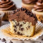 These Chocolate Chip Cupcakes are moist, tender, and packed with mini semi-sweet chocolate chips in every bite. Frosted with rich chocolate frosting, they make a perfect treat for any occasion. Easy to make and sure to please both kids and adults alike!