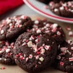 Keywords: chocolate peppermint cookies, peppermint crunch cookies, holiday cookies, chocolate cookies, festive cookies, Andes peppermint chips