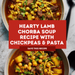 Keywords: chorba, lamb stew, North African soup, chickpea soup, saffron lamb soup, easy lamb chorba recipe