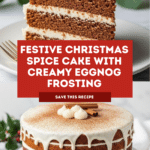 Keywords: Christmas spice cake, eggnog buttercream, holiday cake, white chocolate ganache, festive dessert, spiced cake, holiday baking