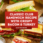 The classic club sandwich is a satisfying triple-layered delight packed with savory turkey, ham, crispy bacon, fresh lettuce, and ripe tomato. Perfect for a hearty lunch, this sandwich combines simple ingredients for a deliciously stacked meal that’s easy to make at home.