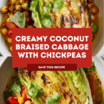 Keywords: coconut braised cabbage, vegetarian cabbage recipe, coconut milk chickpeas, turmeric cabbage, braised vegetables, easy vegetarian recipe, one pan cabbage dish