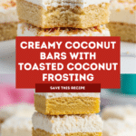 Keywords: Coconut cream bars, coconut dessert, creamy frosting, toasted coconut, easy dessert bars