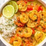 - Serve: Remove the skillet from heat. Serve the shrimp and coconut curry over steamed white rice. Garnish optionally with fresh minced parsley and lime wedges for added brightness and freshness.