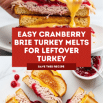 These Cranberry Brie Turkey Melts are a delicious, warm sandwich perfect for using up leftover turkey. Featuring creamy brie, sweet cranberry sauce, and a savory garlic butter turkey mixture, they are cooked to golden perfection in a cast-iron skillet for a melty, crispy treat that’s ideal for a comforting lunch or dinner.