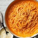 Yes, any long pasta like fettuccine, linguine, or bucatini works well with this creamy tomato sauce. Adjust cooking times accordingly based on the pasta type.
