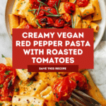This creamy vegan red pepper pasta features tender rigatoni tossed in a luscious, cashew-based sauce bursting with roasted red pepper flavor. Topped with blistered cherry tomatoes and fresh herbs, it’s a satisfying and colorful meal perfect for any night of the week.