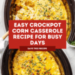 Keywords: corn casserole, crockpot casserole, slow cooker cornbread, creamed corn casserole, easy holiday side dish