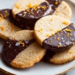 - Melt Chocolate and Dip Cookies: Melt chopped semi-sweet chocolate using a double boiler or microwave in 15-second increments, stirring until smooth. Dip each fully cooled cookie halfway into the melted chocolate and place on a parchment- or silicone-lined baking sheet. Sprinkle immediately with sea salt and additional orange zest if desired.
