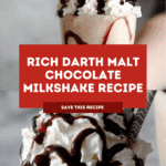 The Darth Malt Milkshake is a rich, creamy treat blending the nostalgic crunch of malted chocolate balls with smooth vanilla ice cream. This indulgent milkshake is perfect for chocolate lovers looking for a fun twist on a classic dessert.