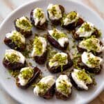 Keywords: Dates, stuffed dates, almonds, crème fraîche, pistachios, Mediterranean appetizer, no-cook recipe, elegant finger food