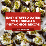Yvonne Maffei’s Dates With Cream and Chopped Pistachios is an elegant and simple appetizer featuring sweet Medjool dates stuffed with crunchy almonds and topped with velvety crème fraîche, fresh citrus zest, and a sprinkle of crunchy pistachios. This no-cook recipe combines rich textures and bright flavors, perfect for entertaining or a refined snack.