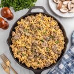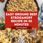 Keywords: ground beef stroganoff, easy stroganoff, creamy beef noodles, weeknight dinner, mushroom stroganoff