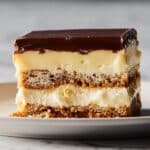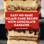 This classic Eclair Cake is a no-bake dessert made with layers of graham crackers, creamy vanilla pastry filling, and a rich chocolate ganache topping. It’s a perfect combination of smooth, sweet custard and crunchy crackers, chilled to set into a deliciously indulgent treat for any occasion.