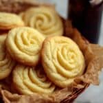 Delightful eggless rosette butter cookies with a soft, melt-in-the-mouth texture, infused with rich butter flavor and a hint of golden butter essence. Perfectly baked to a crisp, these cookies are ideal for tea time or festive occasions.