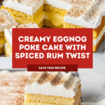 Keywords: Eggnog poke cake, holiday dessert, vanilla cake, eggnog dessert, festive cake, spiced rum cake, instant pudding cake
