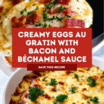 Keywords: Eggs au gratin, Béchamel sauce, baked eggs, bacon, cheesy eggs, French breakfast