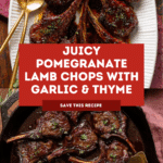 Keywords: lamb chops, pomegranate sauce, seared lamb, oven baked lamb, gourmet lamb recipe, Mediterranean lamb, garlic thyme lamb