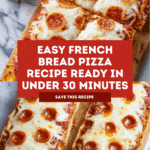 A quick and easy French Bread Pizza recipe featuring a crispy, buttery French bread base topped with savory pizza sauce, gooey melted Mozzarella cheese, and pepperoni slices, baked to golden perfection. Perfect for a delicious homemade pizza night with minimal prep.