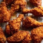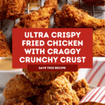 This Fried Chicken recipe delivers an ultra-craggy crispy crust with juicy, tender meat inside. Marinated in buttermilk and coated in a flavorful blend of flour and secret herbs and spices, this chicken is fried to golden perfection. Perfect for those craving a classic Southern-style fried chicken with a remarkably crunchy exterior and rich, savory flavors.