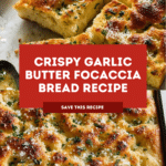 Keywords: garlic bread focaccia, Italian bread, garlic butter focaccia, homemade focaccia, garlic herb bread, baked bread, savory bread