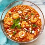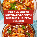 Keywords: Greek Kritharoto, Shrimp orzo, Greek pasta dish, shrimp and feta recipe, Greek seafood pasta, Mediterranean shrimp recipe