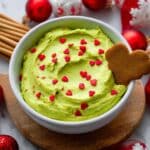 Grinch Dip is a festive, fun treat perfect for holiday gatherings. With a creamy, sweet base tinted a vibrant green and topped with red heart sprinkles, it captures the playful spirit of the season. This easy-to-make dip pairs wonderfully with cookies for a delightful dipping experience.