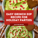 Grinch Dip is a festive, creamy dessert dip perfect for holiday gatherings. Made with heat-treated white cake mix, whipped topping, and vanilla pudding or yogurt, this vibrant green dip is colored with food coloring and topped with red heart sprinkles for a cheerful presentation. Serve it with cookies for a fun and delicious treat.
