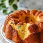 - Cool and Serve: Allow the bundt cake to cool in the pan for about 10 minutes. Carefully cover the top with a large, flat plate and invert to release the cake. Slice into portions and serve warm, optionally garnished with fresh parsley.