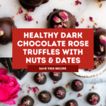 These Healthy Dark Chocolate Nut and Date Rose Truffles combine rich, natural ingredients for a guilt-free treat. Packed with nuts, seeds, and sweet dates, they offer a deliciously chewy texture with a smooth dark chocolate coating and a delicate hint of rose. Perfect for a special snack or elegant dessert.