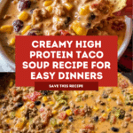 This High Protein Creamy Taco Soup is a hearty and flavorful meal perfect for busy weeknights. Packed with lean ground beef, beans, and vegetables, it offers a creamy and satisfying twist on classic taco flavors. Easy to prepare and sure to please the whole family.