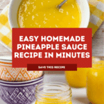 This homemade pineapple sauce is a sweet and tangy condiment perfect for drizzling over desserts, pancakes, or grilled meats. Made with simple ingredients, it’s easy to whip up and adds a fresh tropical flavor to any dish.