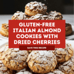 Deliciously chewy Italian Almond Cookies, known as Ricciarelli, are naturally gluten-free and packed with almond flavor. These soft, lightly sweetened cookies are coated in crunchy flaked almonds and studded with dried cherries, making them a perfect treat for almond lovers and a wonderful addition to any dessert table.